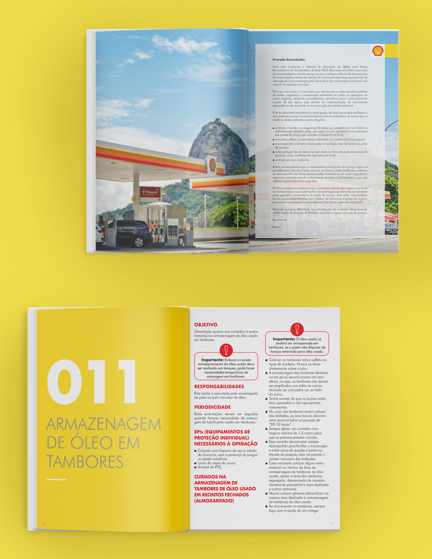 Manual de operações para o posto Shell, este manual contém 133 capítulos com explicações detalhadas de operações em posto de gasolina. Em cada capítulo situações e ações são representadas através da fotografia, ilustrações e ícones. Este manual foi desenvolvido na versão impressa e pdf para web.